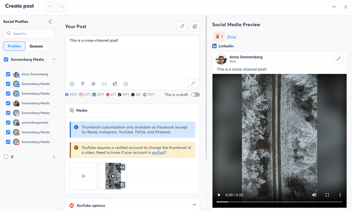 Since you can customize posts for each profile, you can efficiently cross-post to multiple networks.