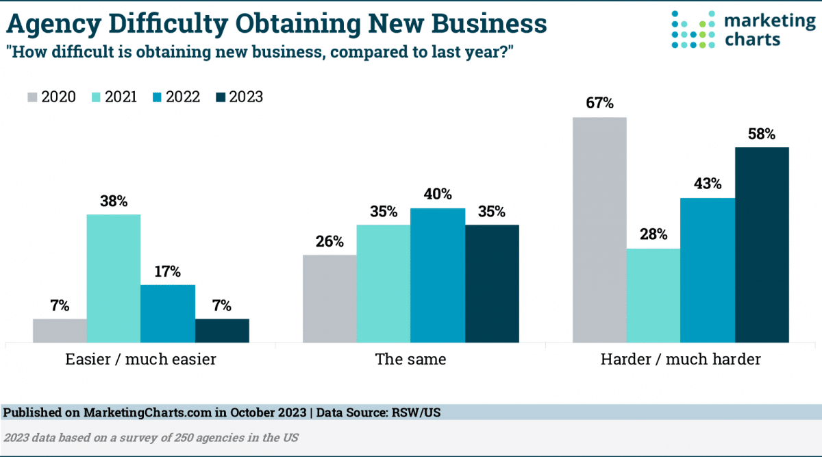 Acquiring new clients is more expensive than retaining the old ones. In fact, according to Marketing Charts, this year has been especially hard in obtaining new businesses compared to last year.