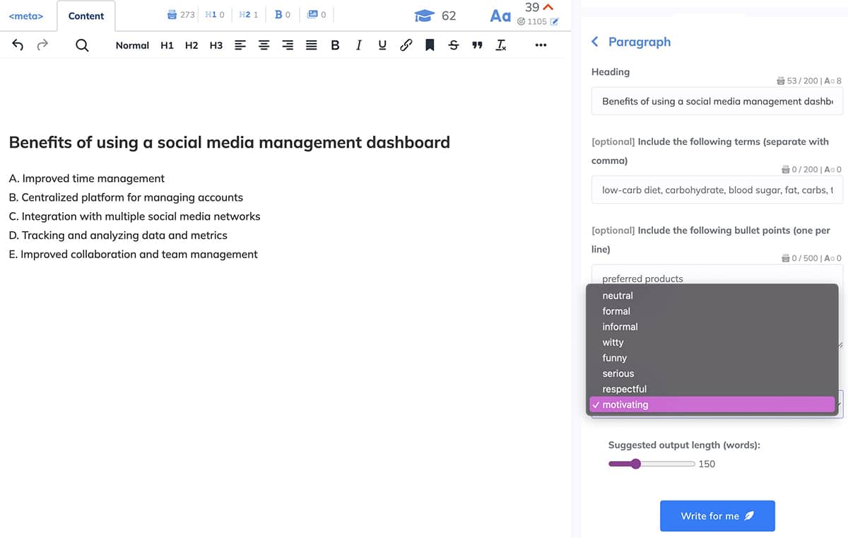 All you have to do is input a few words about the message you want to share. Then you can adjust the tone and formality to fit the context.