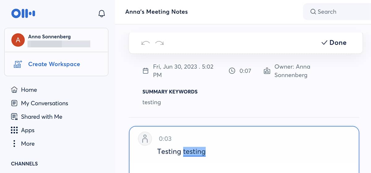 Otter.ai automatically pulls in the title of the meeting so you can organize all your conversations faster. It also highlights keywords from conversations so you don’t have to worry about missing anything important.