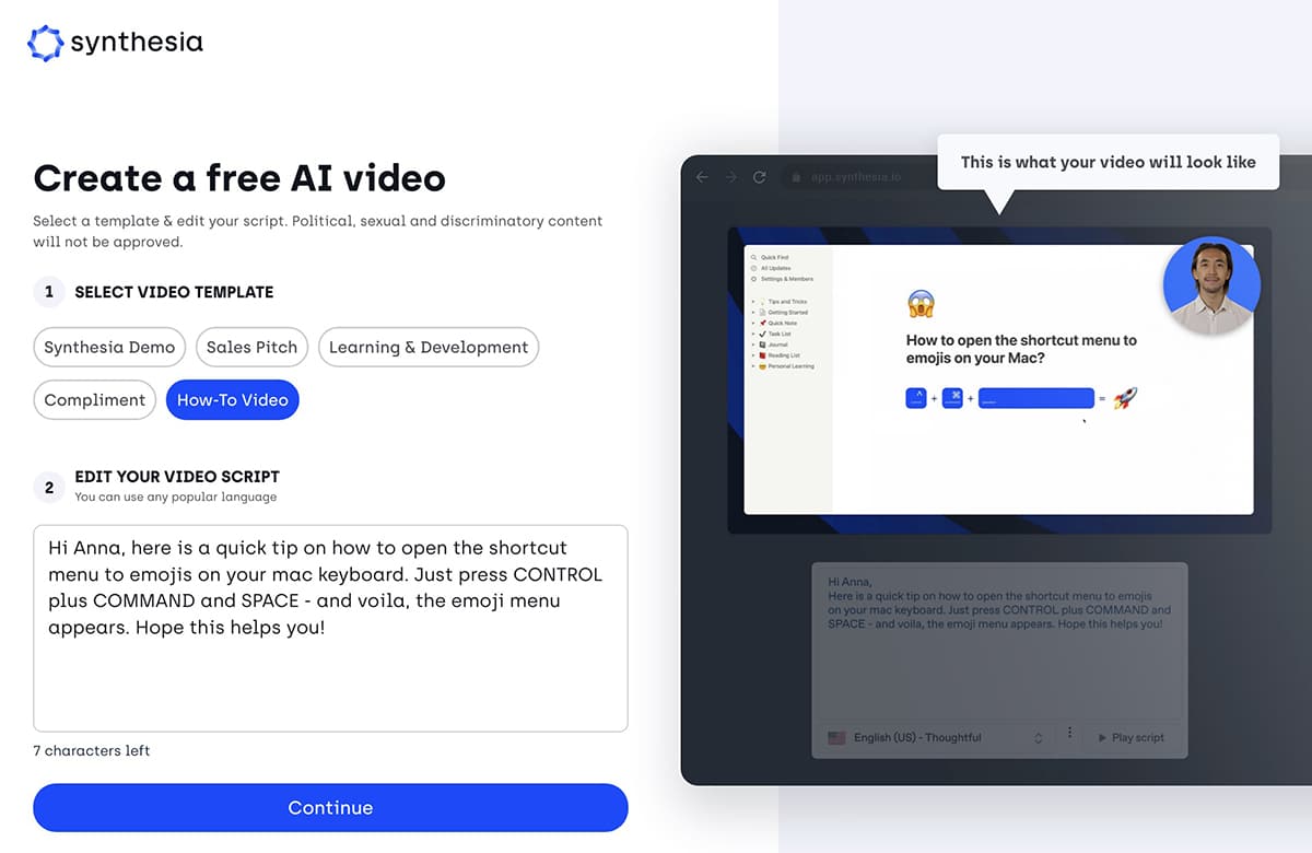 Currently, neither Adobe Express nor Canva supports AI-generated videos. Synthesia does, and the results are pretty promising.