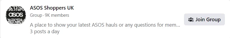 Other brands such as ASOS, an online retailer, focus their attention on social media community management. In addition to manning comments on their page, the brand also has a group to encourage community interaction.