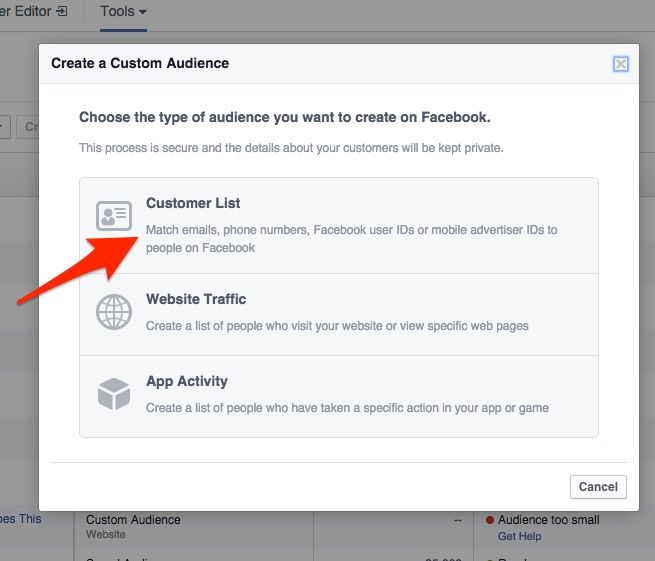 Keep in mind that the size of your audience may not directly correspond with your list, as some people may use different email addresses or they won’t have their number associated with their Facebook account. Generally speaking, I have seen a drop-off of about 20%, but this will always depend on your own list.