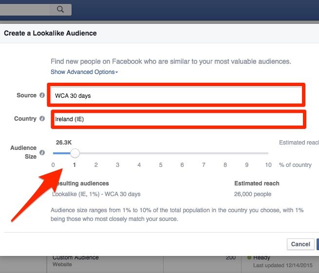 Simply put, Facebook can generate an audience that looks like your own list, current fan base or your website custom audiences. The quality of the lookalike will be determined by the size of your source audience, so the bigger your own audience the more accurate your lookalike is going to be.