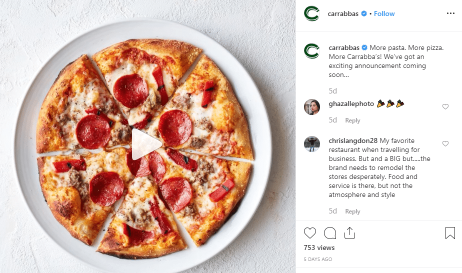 Carrabbas’ teaser include a mouth-watering video of delicious food. People have come to love the brand’s food, and this teaser was enough to spark anticipation and discussion.