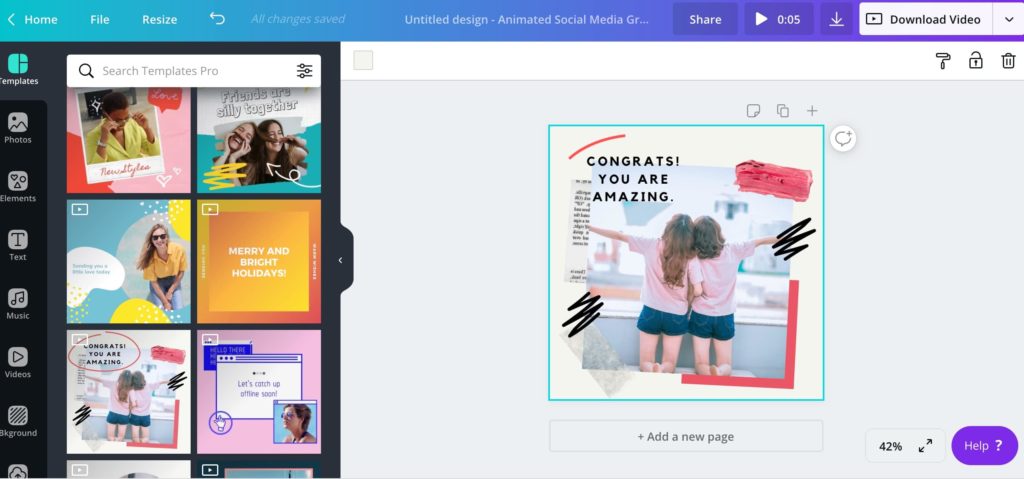 It was a hard decision whether to put Crello in the video section or the graphics section because Crello can do both! Designs come in a variety of sizes ideal for various different social media platforms. If you want to create animated stories for Facebook or Instagram, this might be the perfect tool for you.