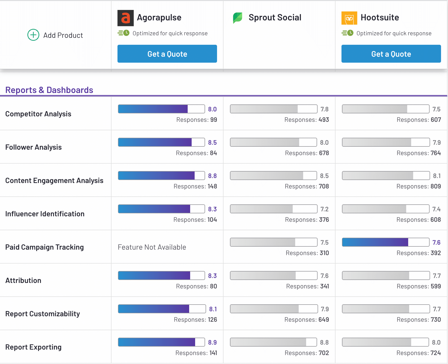 So, how do Agorapulse, Hootsuite, and Sprout Social compare for reporting features?