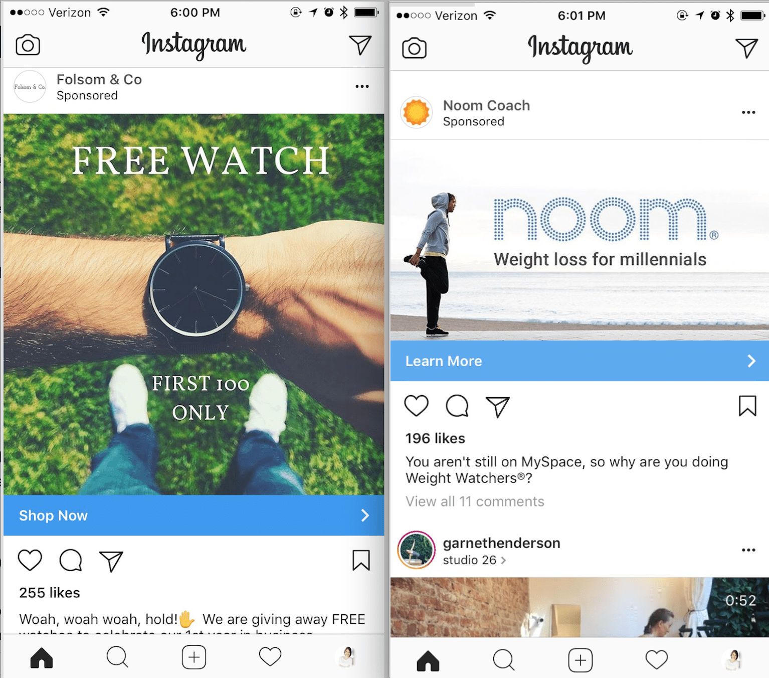 Video is booming on social media right now, and Instagram video ads are no exception. We can now run video ads that last up to sixty seconds long, and all of which will start playing automatically as you scroll past them.