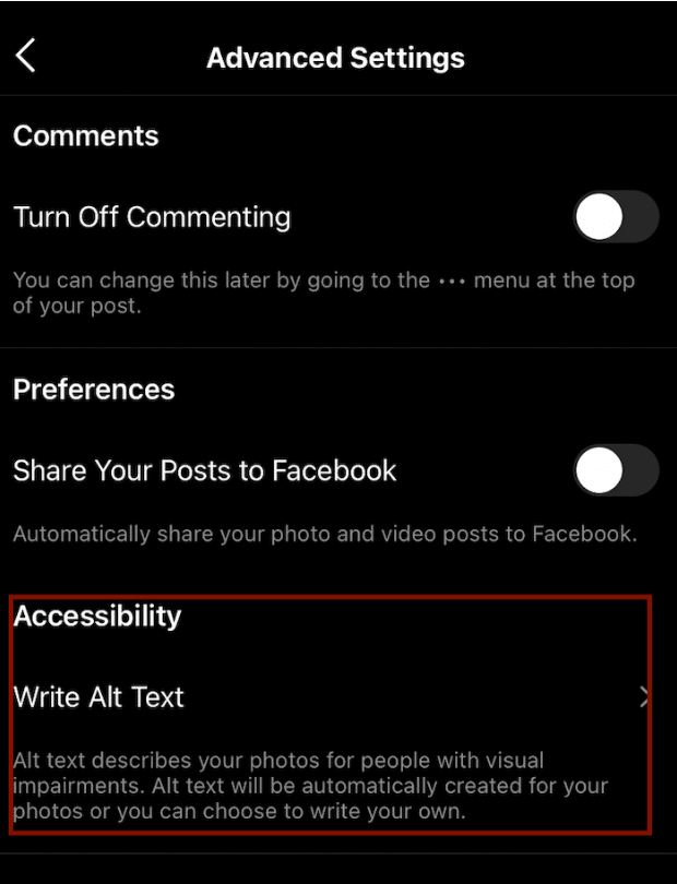 You can then click on “Write Alt Text” under “Accessibility” at the bottom of the page.
