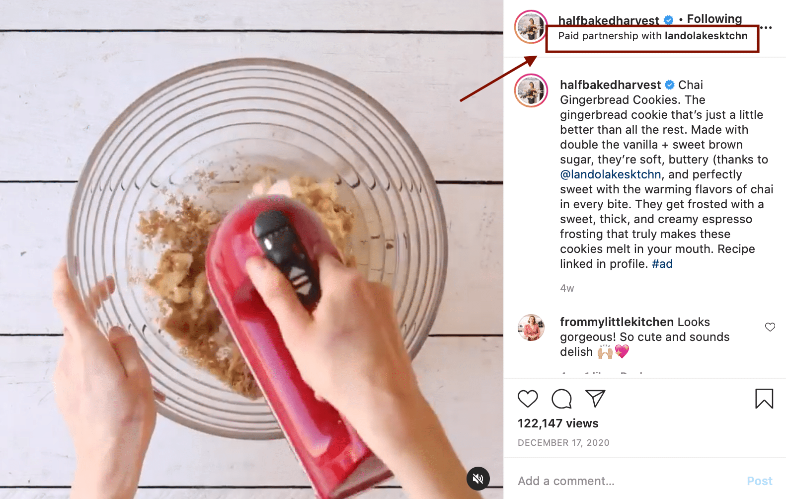 This will present a “paid partnership with” tag in your post, tagging the sponsoring account.