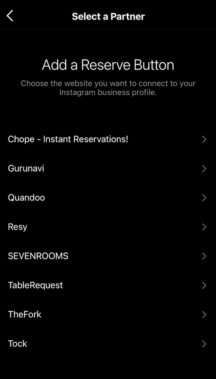 After selecting either “order food,” “gift cards,” “book now,” and “reserve,” you’ll sync up with the third-party tool you’re using.