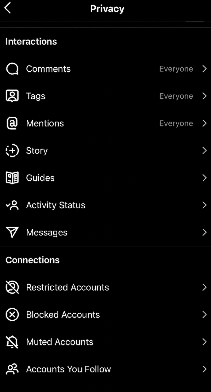 To restrict someone, go to your Settings and then to the privacy section. Scroll down to find “restricted accounts.”