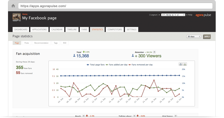 For example, say you wanted to grow your Instagram audience. You can track Instagram audience growth in Agorapulse, zeroing in on the dates of the campaign.
