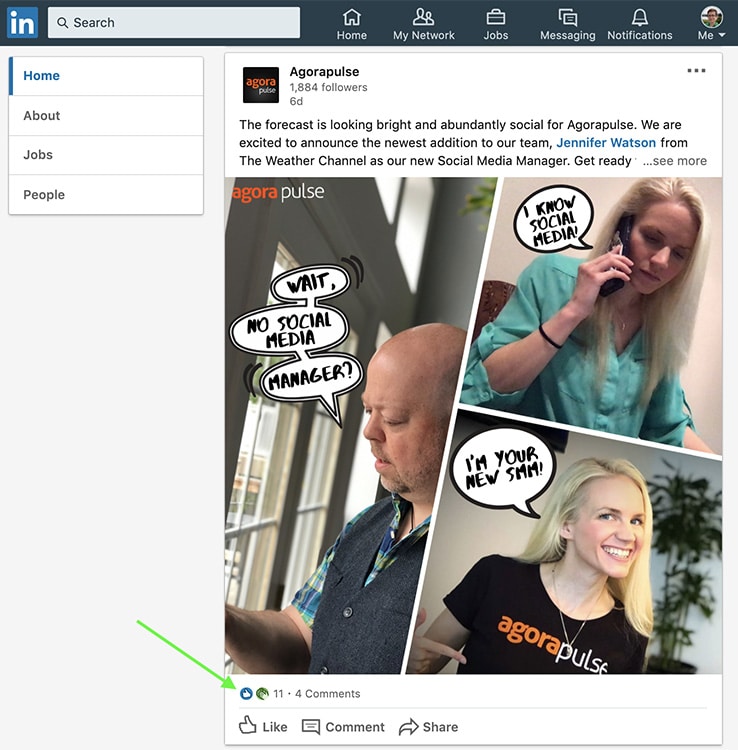 how to use LinkedIn reactions -- screenshot step 1