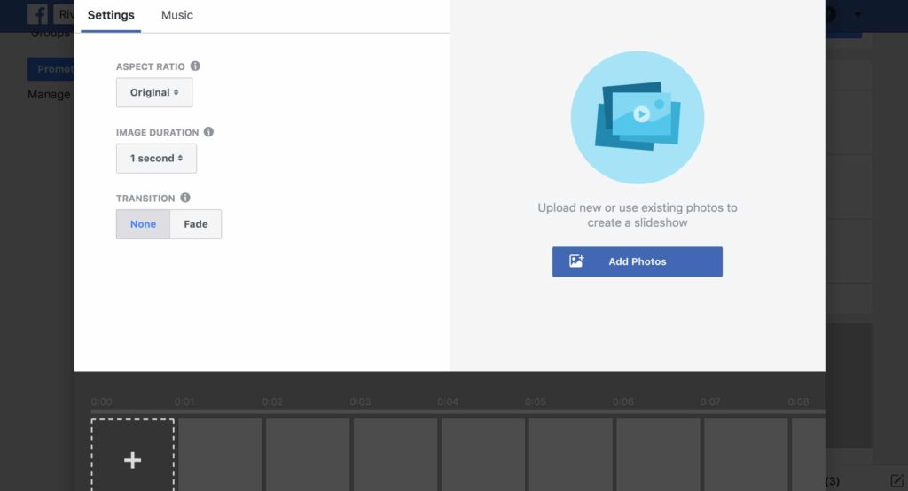 You have the option to use royalty-free music that Facebook provides, or you can upload your own. Make sure you have permission to use any music that you choose!