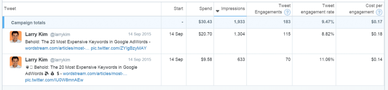 In fact, Wordstream founder Larry Kim, conducted an experiment to analyze the impact of emojis on engagement. Tweets with emojis received 25.4% more engagement than those without as you can see below: