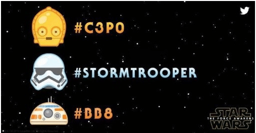 For example, Disney used emojis on social media to promote “The Force Awakens” and to introduce the BB8 droid: