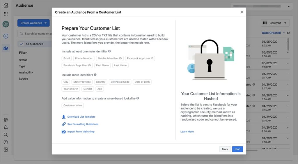 When you create your next social ad campaign, you can target your Custom Audience and reach people who are already engaged with your brand. Upload just a segment of your customer list, and you can connect with even more specific groups, such as repeat buyers.