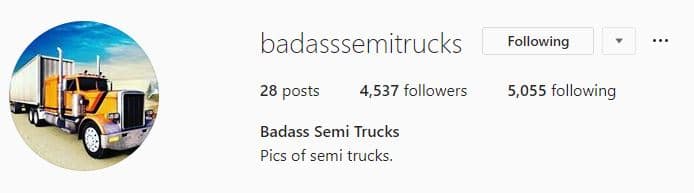 - @BadassSemiTrucks — an entertainment account I own with 4,537 followers