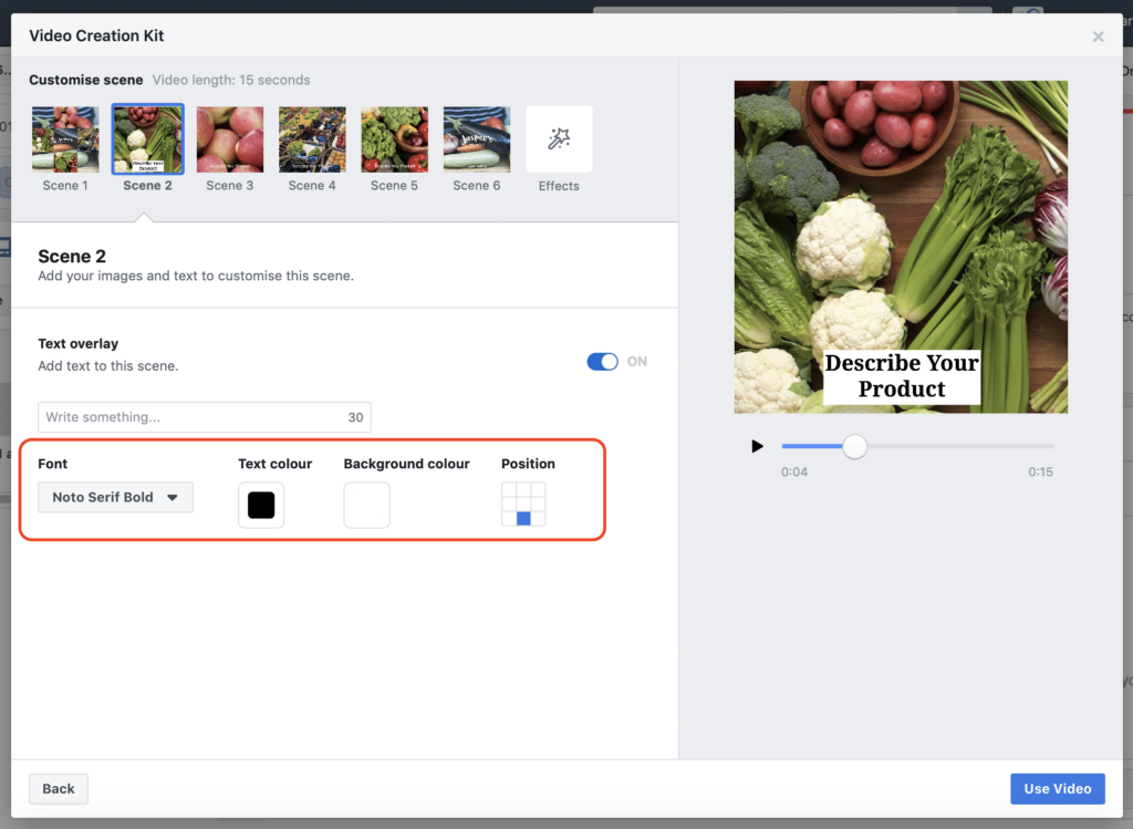 Once you are happy with your video and you’ve checked the preview of it on the right side of the window, click Use Video in the bottom right. This will create your video and add it to your ad.