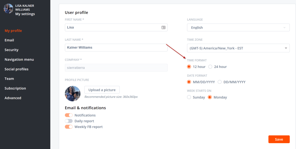 Many of our customers have worldwide teams. So, we’ve allowed each team member set their time and date to the way they prefer.