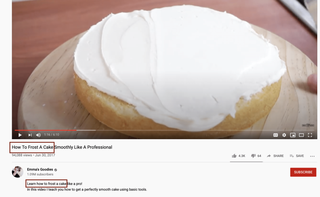 You can see an example of this here. The keyword used to find the video was “how to frost a cake.”