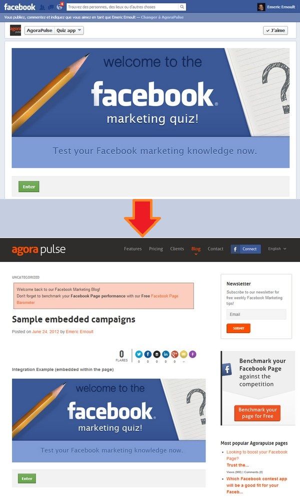 Agorapulse ofrece una opción que te permite incluir tu concurso de Facebook directamente dentro de tu blog o página web. Una manera cómoda de aprovechar el tráfico existente de tu web e impulsar la participación en tu Instant Win de Facebook.