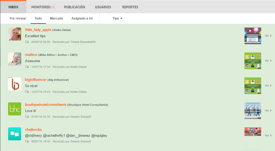 Una excelente forma de hacerlo, sin perderte ninguno de los comentarios es usar una herramienta como Agorapulse. Esta herramienta me permite ver todos los comentarios dentro de una bandeja de entrada y alcanzar el tan deseado “Inbox Zero” muy fácilmente.