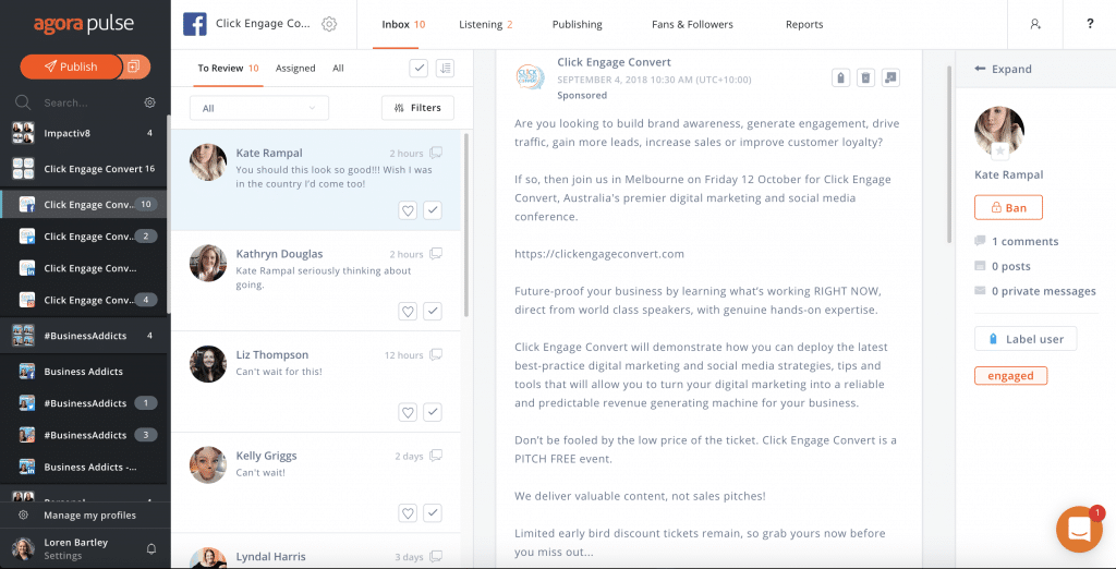 Y ni hablar de la falta de notificaciones que recibes en general en Facebook. Es casi imposible responder de forma inmediata a los comentarios que recibes en tus anuncios si no utilizas una herramienta como Agorapulse para monitorear la actividad en tu cuenta.