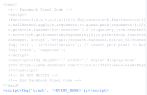 Ahora tendrás que pegar el código del píxel directamente en el encabezado en tu sitio web. Puedes ver cómo instalar el píxel de facebook aquí.