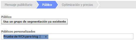 Accede a Power Editor o al Administrador de Anuncios como siempre lo haces. No obstante, cuando tengas que seleccionar a tu audiencia, carga la lista de Público Personalizado de tu Sitio Web que recién construiste.