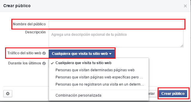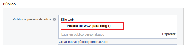 Web Custom Audiences en Administrador de Anuncios de Facebook