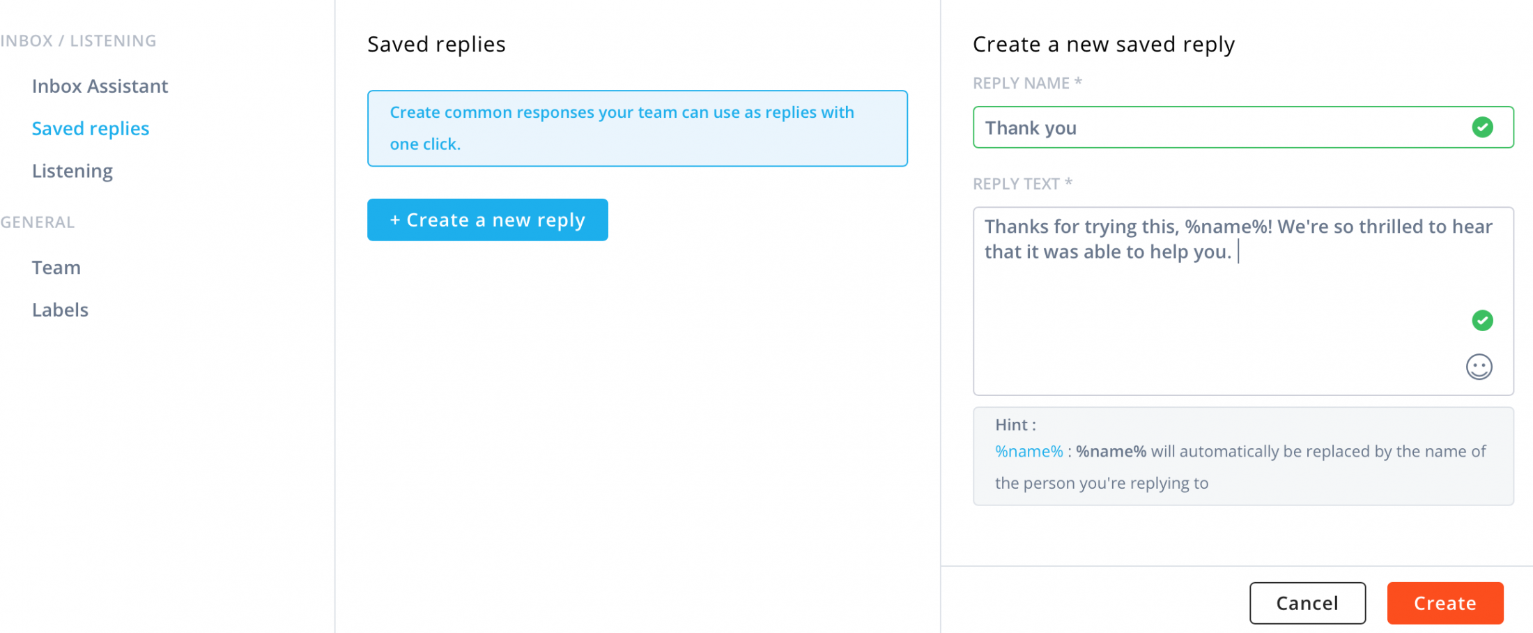 Con las respuestas guardadas puedes ahorrar mucho tiempo al responder a este tipo de contenido. Puedes, por ejemplo, tener una respuesta prefabricada con información general que puedes editar un poco para cada uno de tus clientes.
