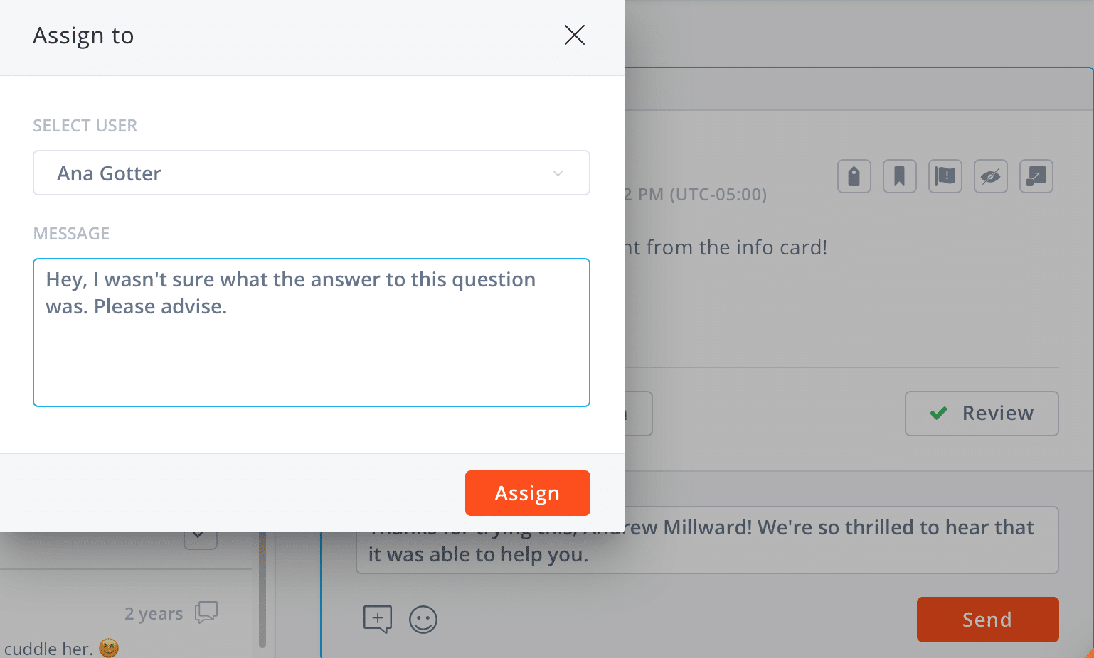 Puedes enseñar a tu equipo cómo comunicarse con tus clientes y asignarles conversaciones para que puedan responder a tus clientes de la mejor forma.