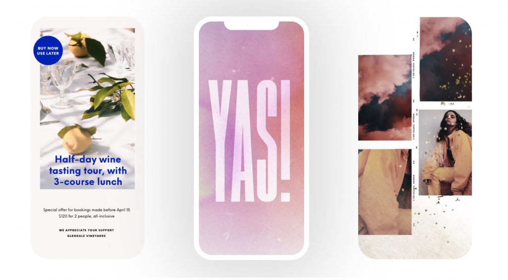 Unfold est une application très populaire pour créer des stories Instagram, disponible sous iOS et Android.. Le concept est simple, de nombreux templates sont proposés pour créer des stories uniques, mettre en avant vos produits, vos équipes vos nouveautés… Les photos ou vidéos à insérer dans les stories peuvent être éditées avec des effets, des filtres, l’ajout de texte et bien d’autres options. Unfold se différencie notamment via les stories type collage.