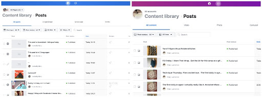 Le Facebook Creator Studio n’offre pas la possibilité de publier sur plusieurs comptes en même temps. De nombreux utilisateurs considèrent cette fonctionnalité comme l’un des principaux avantages de l’utilisation d’un outil tiers de gestion des réseaux sociaux (moi la première pour mes différents clients).
